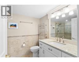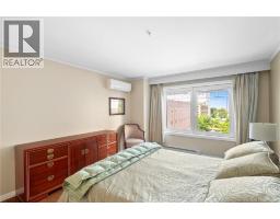 Welcome to this luxurious 2 bedroom, 2-bathroom condo in the heart of downtown within walking distance to amenities. Condo has experienced extensive renovations & upgrades over the last 10 years. This exceptional unit is perfectly suited for working professionals, down-sizers, or anyone seeking city living without compromising on luxury. Interior features include engineered hardwood flooring, energy-efficient heat pumps with 4 heads, utility room for washer/dryer with ample storage. The gourmet galley kitchen boasts modern cabinets, elegant quartz countertops, sleek tile flooring & stylish backsplash, additional high-end white cabinets with lighting, built-in wine rack and plenty of cabinetry with an open concept view of the living room, dining area & foyer. A versatile den/office with built-in entertainment centre and a drop-down desk with a remote-control privacy blind between kitchen allowing a customized space for work or relaxation with access to your private balcony. The primary bedroom offers ample closet space & private ensuite with a remodelled soaker tub and high-tech bidet toilet seat. Closet area has been restructured to optimize space & organization, including a dedicated shoe closet, linen closet, and two spacious wardrobe closets. Guest bedroom has access to a second balcony and offers another bathroom. The building provides a storage room on your floor, heated underground parking, guest room available for rent, mailboxes in lobby, fitness room & two elevators. (id:57497)